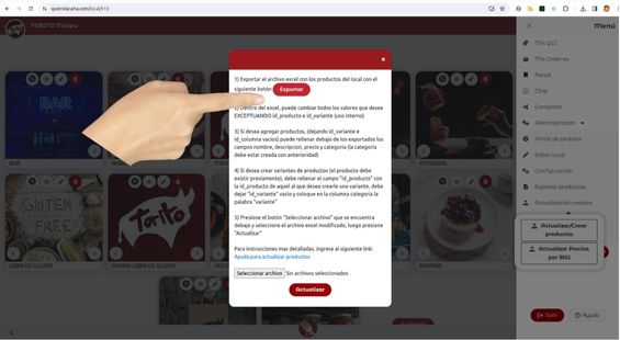Paso 1: Desde el portal de tu negocio abrimos el menú lateral y damos en “Exporta productos”