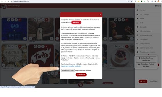 *Deberemos con anterioridad agregar el sku a cada producto en quieroalcarta.